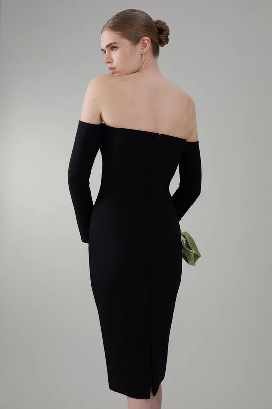 A statement piece with classic appeal, this bandeau midi dress lends itself perfectly to grand occasions. Enlivened with a bold rose applique piece, this dress will ensure you stand out from the crowd while maintaining elegance at all times.