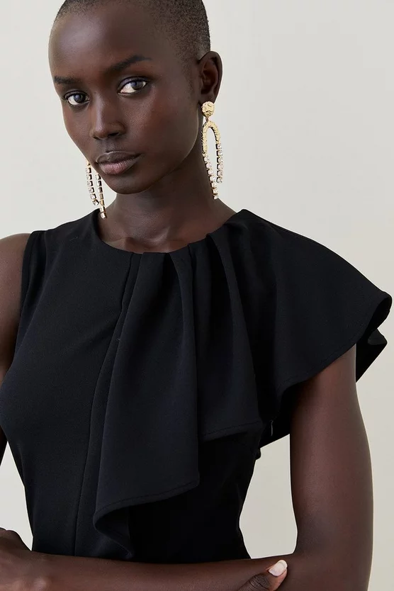 Artfully framing the form with an asymmetric composition, this fashion-first mini dress presents a masterful twist on timeless tailoring. Characterised by its waterfall shoulder, pair with bold jewels for a contemporary take.