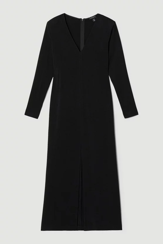 Cascading with a languid flow, this maxi dress is the epitome of elegance. Balancing an angular V-neckline with a split hem, pair this style with colour pop stilettos for a vibrant finishing touch.