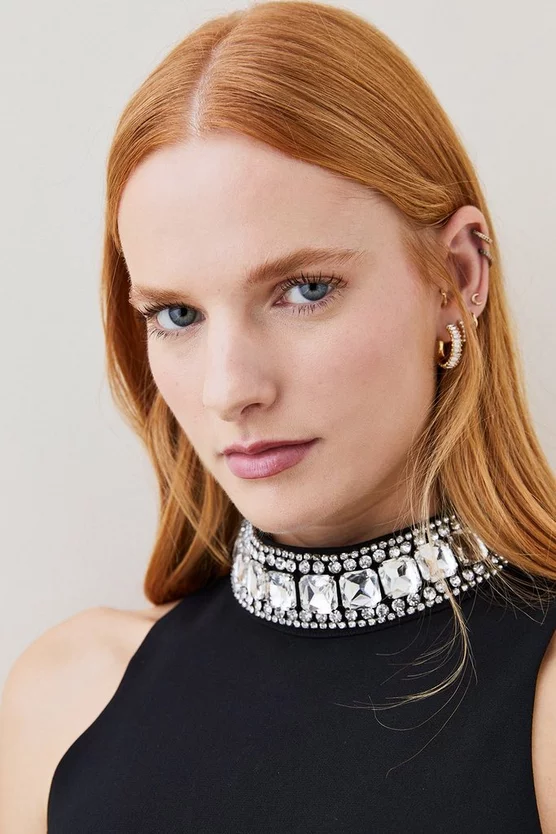 Indulge in a spot of sartorial hedonism this summer, starting with our show-stopping colour-pop mini dress. Lined with chunky crystal trims for an alluring Art Deco feel, it looks spectacular glinting beneath the moonlight at special soirees and shows off polished legs beautifully thanks to a seductive thigh split. The clean, sleeveless cut comes further accentuated by a back cut-out to hint at another sliver of sun-kissed skin.
