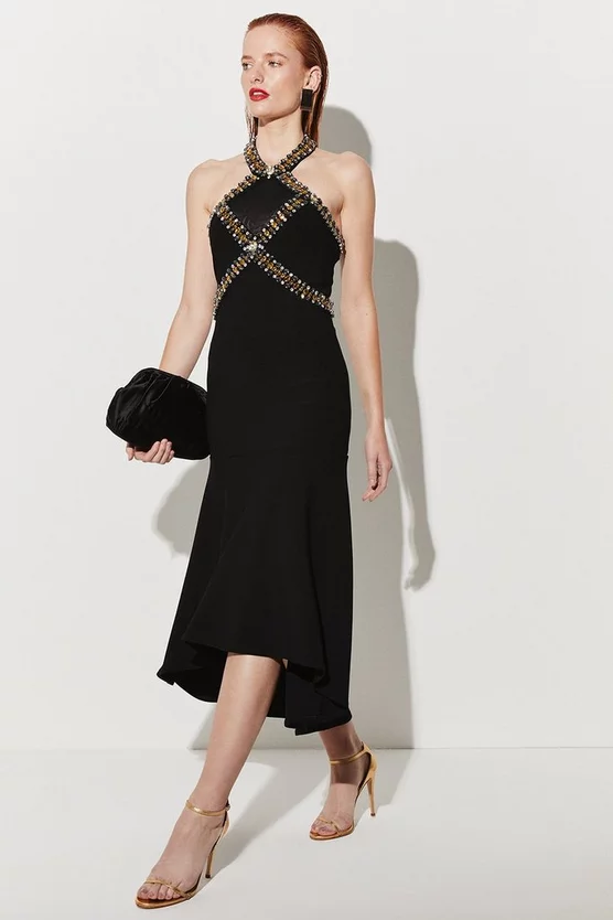 - Neckline: Halterneck