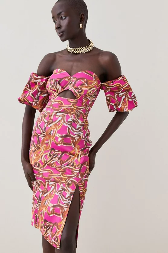 Main: 75% Acetate, 22% Polyamide, 3% Elastane. Lining: 97% Polyester, 3% Elastane. Professional dry clean only. Model wears UK size 8/ US size 4. Model height approx 5″9. Length Approx. 85cm