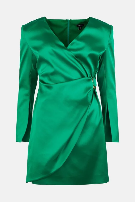 Get ready for your moment in the spotlight in this sophisticated dress. Marrying Italian structured satin with distinctive details โ think split-detail sleeves, wrap front and waist-defining buckle โ it strikes the perfect put-together style note for after dark.