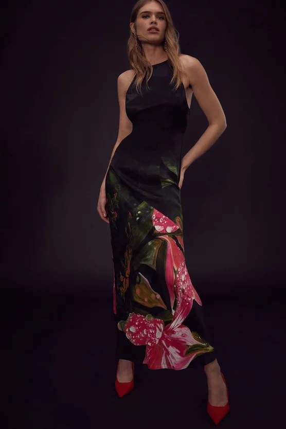 This printed slip dress is part of Karen Millen x Kate Bickmore: The Second Collection. Reimagining Kateβs original prints in a fresh, captivating palette, these dramatic new compositions beautifully bring our silhouettes to life, and in turn, your wardrobe too.